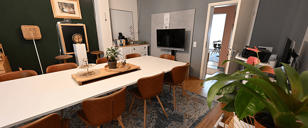 Jeder Raum ist mit einem umfangreichen Set an Kreativtools ausgestattet. Perfekt für kleine bis mittelgroße Gruppen bieten unsere flexibel gestaltbare Räume Platz für: